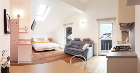 - Westblick – Mansardenstudio 33 m² + 13 m² Loggia mit Panorama-Etschtalblick