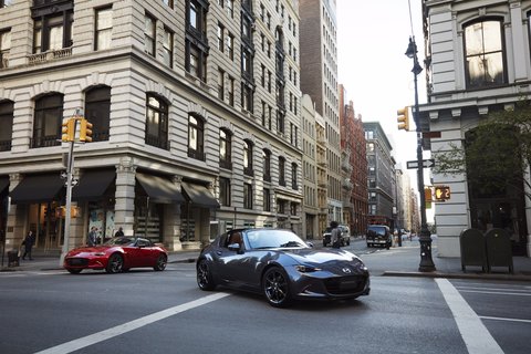 Weiterhin verfügbar bleibt das Sondermodell AD’VANTAGE. Es kombiniert das pure Roadster-Vergnügen des 97 kW/132 PS starken 1,5-Liter Skyactiv G Benziners mit hilfreichen Sicherheits- und Komfortfeatures. Zusätzlich zur Serienausstattung sind eine Ausparkhilfe (RCTA), das dynamische Kurvenlicht (AFS), ein Mazda SD-Navigationssystem, Parksensoren hinten und der Spurwechselassistent Plus (BSM) mit an Bord.