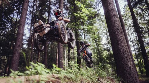 An Mitleid hat er kein Interesse. Stattdessen versucht er, seine Situation Stück für Stück zu verbessern. So sieht er selbst in seinem aktuellen Mountainbike Potenziale, entwirft gemeinsam mit seinem Freund Torben einen neuen Prototypen und plant damit sogar einen Markteinstieg: „Ich will Menschen, die eingeschränkt sind, die Möglichkeit geben, in die Natur zu kommen und dann auch wieder heil zurück.“ Das Projekt sei für ihn ein Herzenswunsch. Wenn der 28-Jährige heute im Mountainbike sitzt, spielt Vergangenes keine Rolle: Geschwindigkeit, sich am Limit bewegen – das ist für ihn unverändert spannend. Angst vor einem erneuten Unfall hat er nicht: „In dem Moment, in dem du darüber nachdenkst, was sein könnte, fährst du nicht mehr befreit.“ David fühlt sich genau in diesen Momenten wohl, wenn er sich im Grenzbereich bewegt. Dafür sei es erforderlich, Risiken einzugehen und hohe Geschwindigkeiten anzupeilen.