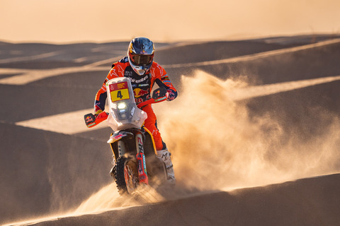 Mit 40 Sekunden Vorsprung auf Ricky Brabec nach der Aktion am Sonntag wusste Sanders, dass er den Rest der zermürbenden Zeitfahrprüfung heute hart angehen musste, um seine Gesamtführung auszubauen. Als siebter Fahrer am Start schloss Daniel bald zu den Fahrern vor ihm auf und half bei der Eröffnung der Strecke, indem er Zeitbonifikationen für fast 150 Kilometer sammelte. Sanders meisterte die schwierige Sonderprüfung mit Bravour und beendete die zweitägige Etappe mit fast sieben Minuten Vorsprung. Damit baute er seinen Vorsprung in der Gesamtwertung auf über 12 Minuten aus. Der zweite Etappensieg des Australiers ist sein dritter Etappensieg in Folge - eine Leistung, die in der Motorradkategorie der Dakar seit 2017 nicht mehr erreicht wurde.