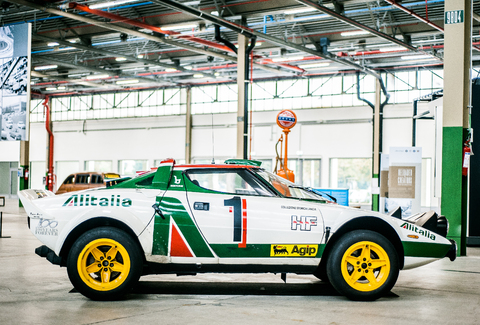 Der außergewöhnliche Lancia Stratos Gr.4 Alitalia (1974) ist zweifellos eines der beliebtesten Fahrzeuge in der Ausstellung. Er gewann 1976 die Rallye Portugal und wurde 1977 Zweiter bei der Rallye Monte Carlo. Das legendäre Stratos-Modell mit der weiß-rot-grünen Alitalia-Lackierung ermöglichte es Lancia, die Rallye-Welt bis Mitte der siebziger Jahre zu dominieren. Der damalige Sportdirektor Cesare Fiorio schöpfte alle Möglichkeiten des Reglements aus. Unter seiner Leitung wurde das erste Auto mit dem einzigen Ziel gebaut, Rallye-Rennen zu gewinnen. Das zweisitzige Coupé verfügte über eine keilförmige Karosserie, die von Marcello Gandini für Bertone entworfen wurde, und einen 2,4-Liter-Sechszylindermotor von Ferrari, der zur Gewichtsoptimierung hinter Fahrer und Beifahrer angeordnet war. Der Stratos, der in der offiziellen Rennversion (mit einem 12-Ventil- und später 24-Ventil-Zylinderkopf für eine Höchstleistung von 300 PS) in 26 von 500 Exemplaren produziert wurde, erzielte eine außergewöhnliche Anzahl von Siegen, so dass er als die „ultimative Waffe“ des Rallyesports bezeichnet wurde. Er gewann sogar drei aufeinanderfolgende Rallyes in Monte Carlo und drei weitere Titel in der Rallye-Konstrukteurs-Weltmeisterschaft (von 1974 bis 1976), sowie drei Fahrer-Europameisterschaften und den FIA-Rallyefahrer-Weltcup im Jahr 1977 mit Sandro Munari.
