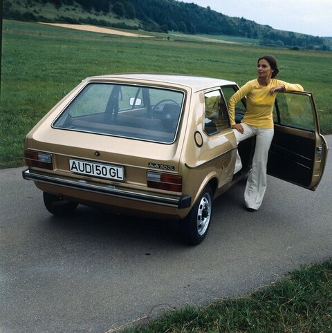 Er kommt genau zur richtigen Zeit: Mit dem Audi 50 geht 1974 unmittelbar nach der Ölpreiskrise von 1973 der erste Kleinwagen eines deutschen Herstellers an den Start. Er ist sparsam im Verbrauch, seine Konzeption ist wegweisend: Frontantrieb mit Quermotor, Zweitüren-Kombilimousine mit großer Heckklappe und umlegbarer Rücklehne, kompakte Außenmaße sowie ansprechende Fahrleistung und Fahreigenschaften. Der Audi 50 ist zudem eine Blaupause für den fast baugleichen VW Polo, den die Wolfsburger sieben Monate später auf den Markt bringen: Synergien in der Konzernfamilie nutzen – auch vor 50 Jahren schon ein Erfolgsrezept.